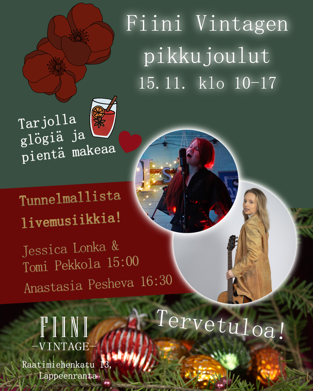 Päivän aikana luvassa livemusiikkia ja glögitarjoilua. Ehkäpä jotain tarjoustakin keksitään!