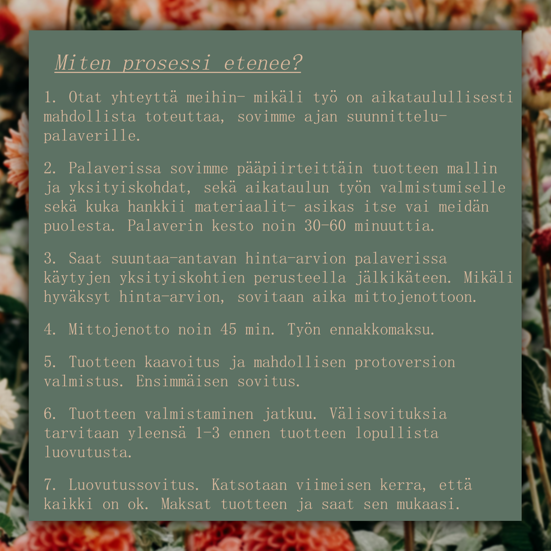 Lue alta lisää mittatilaustuotteen valmistamisesta!